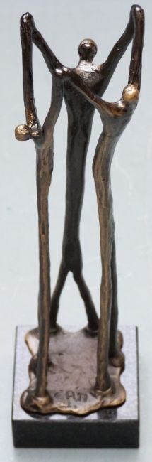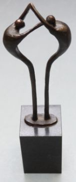 Two Artihove bronzes / bronze sculptures of people linking arms with maker's label to base, one example boxed with certificate naming artist Corry Ammerlaan-Van Niekerk, height of taller 24cm