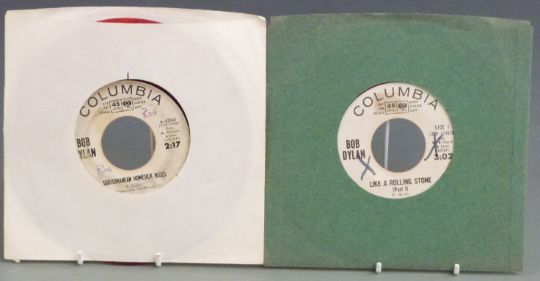 Bob Dylan - Like A Rolling Stone (JZSP110940), Subterranean Homesick Blues (JZSP 7990) red vinyl white label USA radio station singles