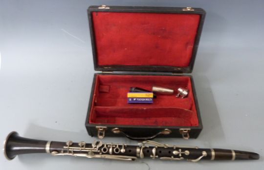 Lucian Bassi, Blackpool, London and Paris, wooden bodied clarinet with nickel keys, in original hard fitted case