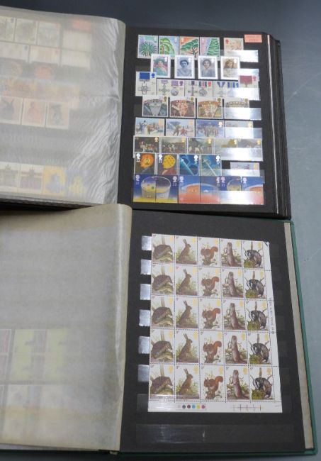 Four stockbooks of mint GB stamps, George V to QEII singles and blocks, high redeemable value