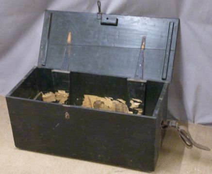 Black painted travelling or similar box, W83 x D37 x H38cm