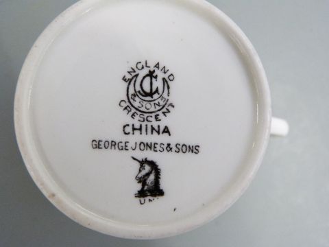 Royal Doulton tobacco jar, Jock of the Bushveld Seriesware plate and a first quarter 20thC George Jones coffee set, tallest 17cm