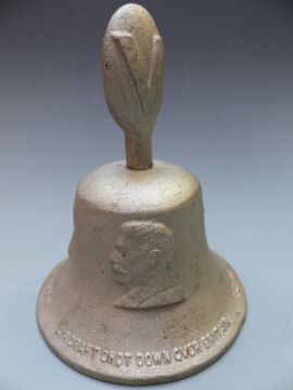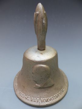 RAF 1939-45 Benevolent fund bell cast with metal from German aircraft shot down over Britain with 'V' handle, height 14cm