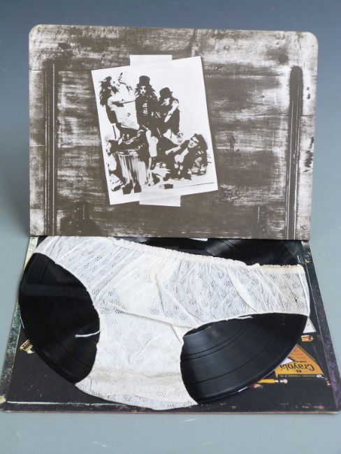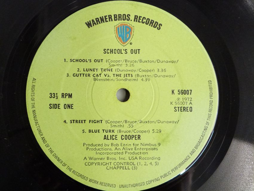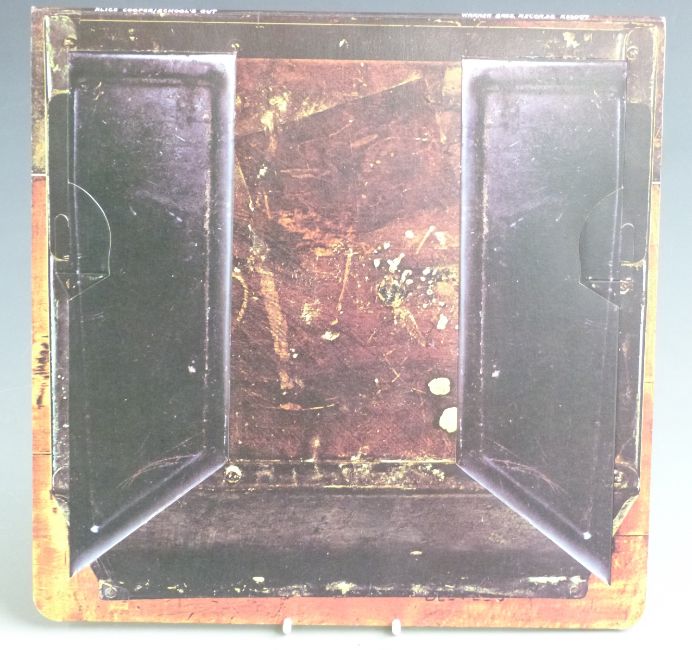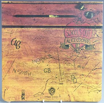 Alice Cooper - School's Out (K56009) desktop with panties, green label A1/B1, record and cover appear Ex