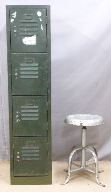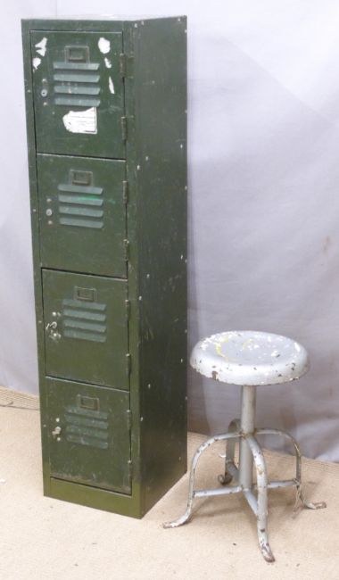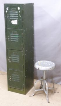 Set of four metal lockers, height 129cm and a metal desk chair