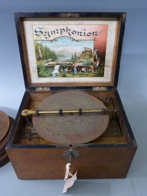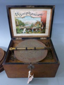 A German Schutz Marke mahogany cased Symphonium, with impressed serial no 348185 together with a quantity of discs