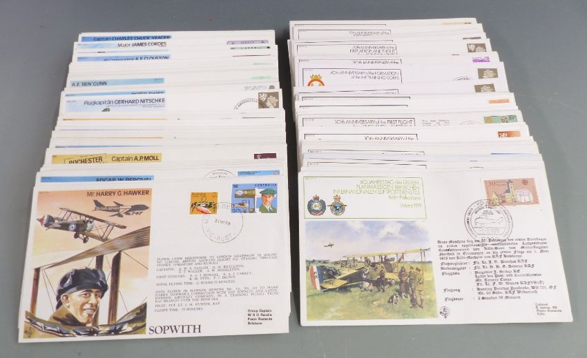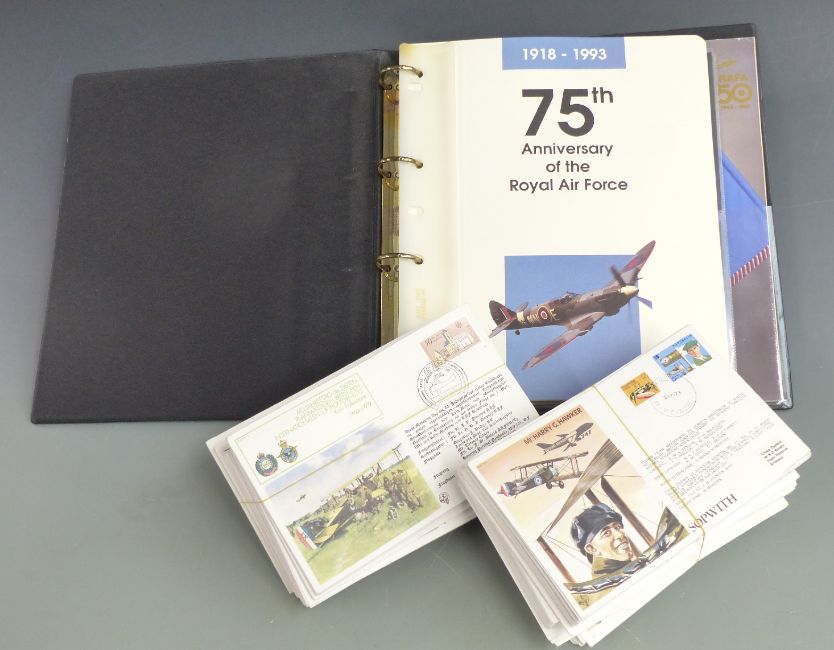 A quantity of RAF 1st flight anniversary covers together with a quantity of RAF test pilot covers (all flown), and commemorative stamps