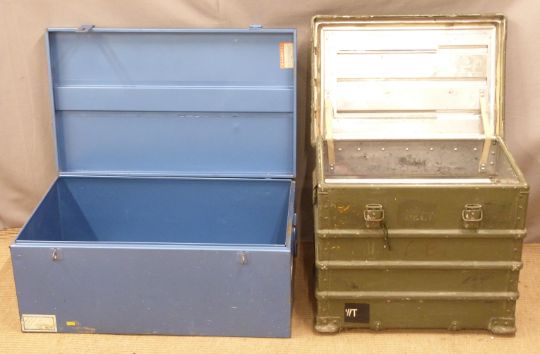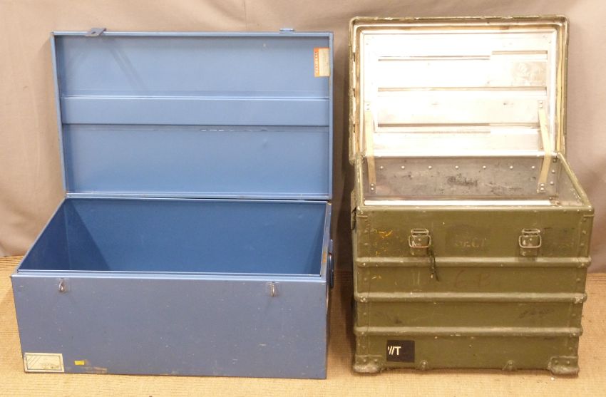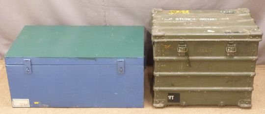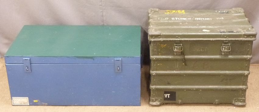 Military or similar storage or transport crate together with a further metal case, width of larger 80cm