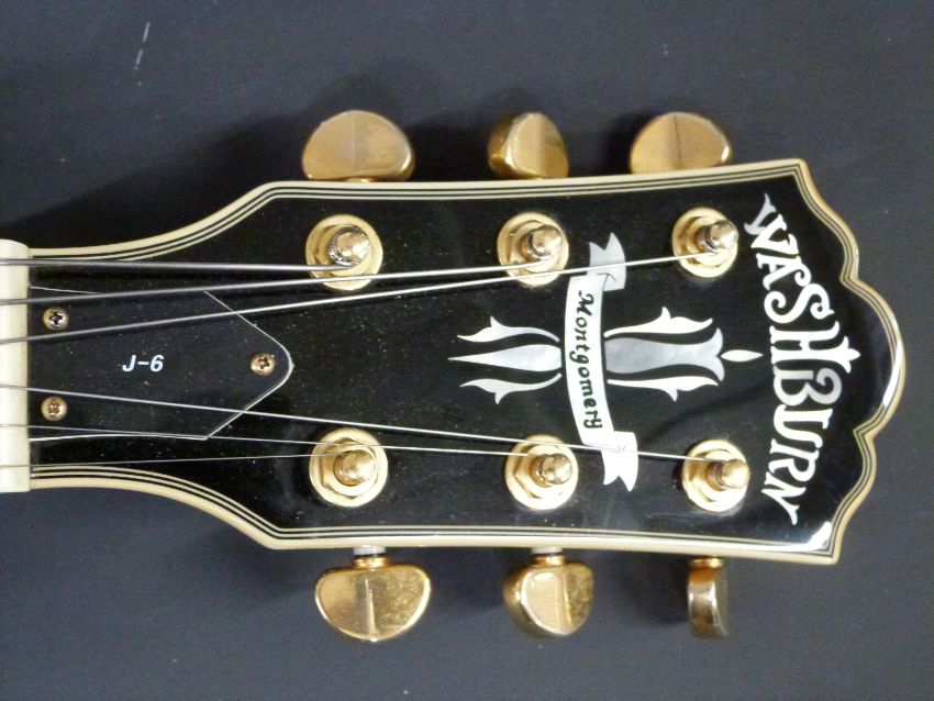 Washburn J6 Montgomery 1991 electro acoustic jazz guitar, reg no HO 1060561, fitted with six steel strings, in natural wood lacquered finish, with semi rounded back & Buzz Felton tuning system, in Levy's soft carry case