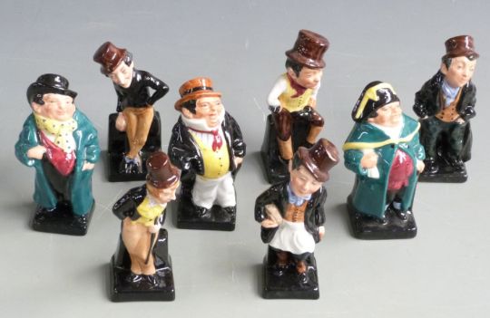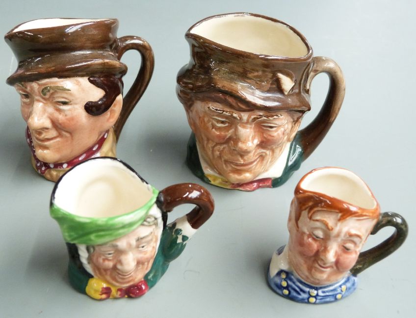 Twenty four Royal Doulton Dickens figures and four small character jugs, tallest 11cm