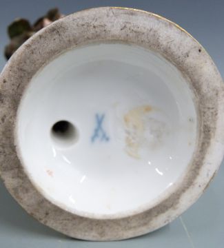 Meissen figure of a man with bird's eggs in his hat, leaning on a tree trump, H 19cm