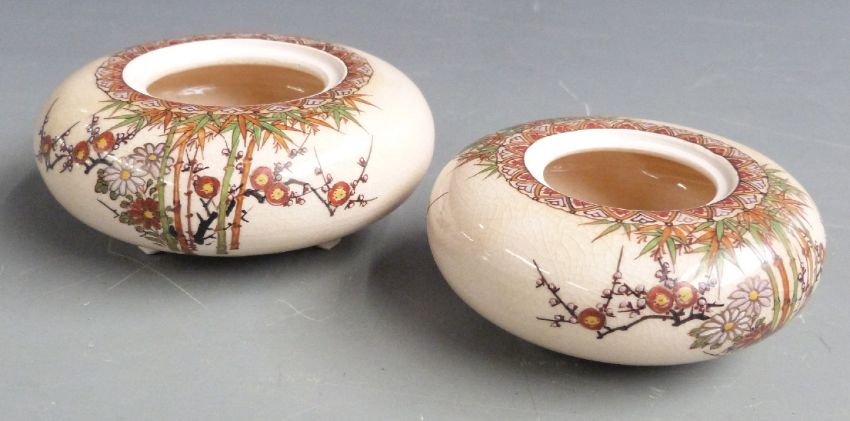Ceramics including a lustre ware pedestal bowl, mark blurred but probably Carltonware, Satsuma ware, Dresden, Goebel Hummels etc