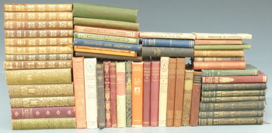 [Bindings] Selections from Tennyson, Kingsley’s Water Babies, Poems of Herrick illustrated by E. Stanhope Forbes, Poems of Keats illustrated by E.J. Sullivan, Thackerays Works, Bronte Novels including Wuthering Heights and Jane Eyre, Letters of Southey, Shelley’s Prose Works etc (approx 50)