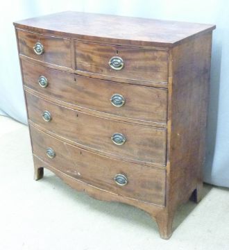 19thC bow front mahogany chest of two over three graduated drawers, W105 x D52 x H105cm