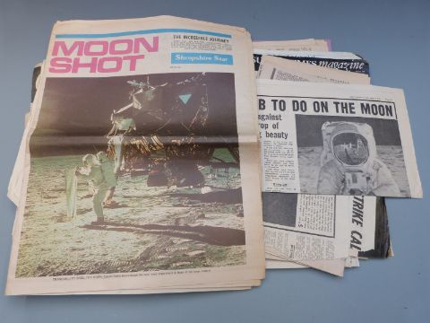 Scrapbook of original newspaper cuttings relating to the space race including man on the moon