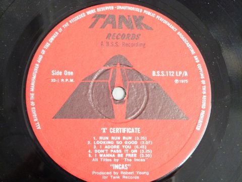 The Incas - X certificate (B55 112) record and cover appear at least Ex.