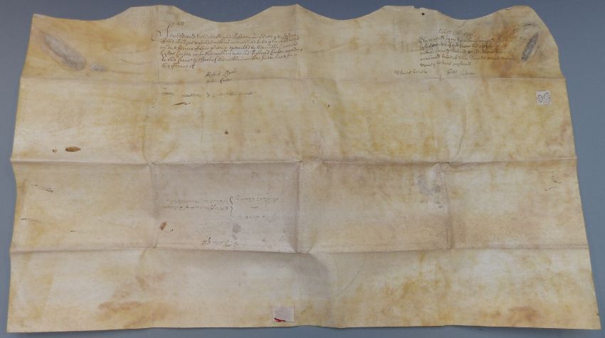 Queen Anne Indenture dated 1711 relating to the Cater family of Slow (sic) possibly (Slowwe) house in the parish of Arlingham, Gloucestershire relating to land at The Wharfe, Arlingham, 44 x 74cm