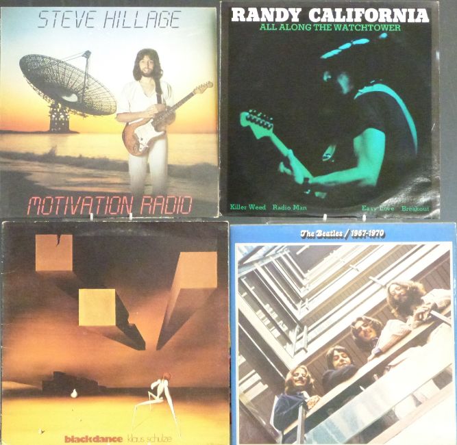 Approximately 65 albums including The Beatles, Paul McCartney, Johnny Cash etc plus James Brown card flyer and 7 inch singles
