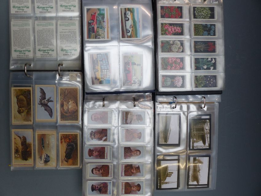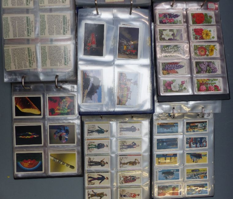 Five albums of cigarette and trade cards comprising album 1 - Flowers and Garden Flowers by Wills, Gallagher, Carreras and Godfrey Phillips; album 2 - all military including Wills, Senior Service, Gallagher, Carreras, John Player, Ardoth etc; album 3 - all Castella; album 4 -PG Tips, Barratt, Rocksell, Greggs etc; album 5 - all cigars