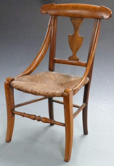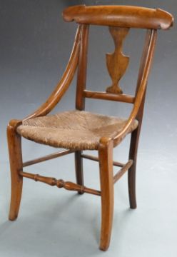 A 19thC child's or apprentice fruitwood chair, height 58cm