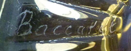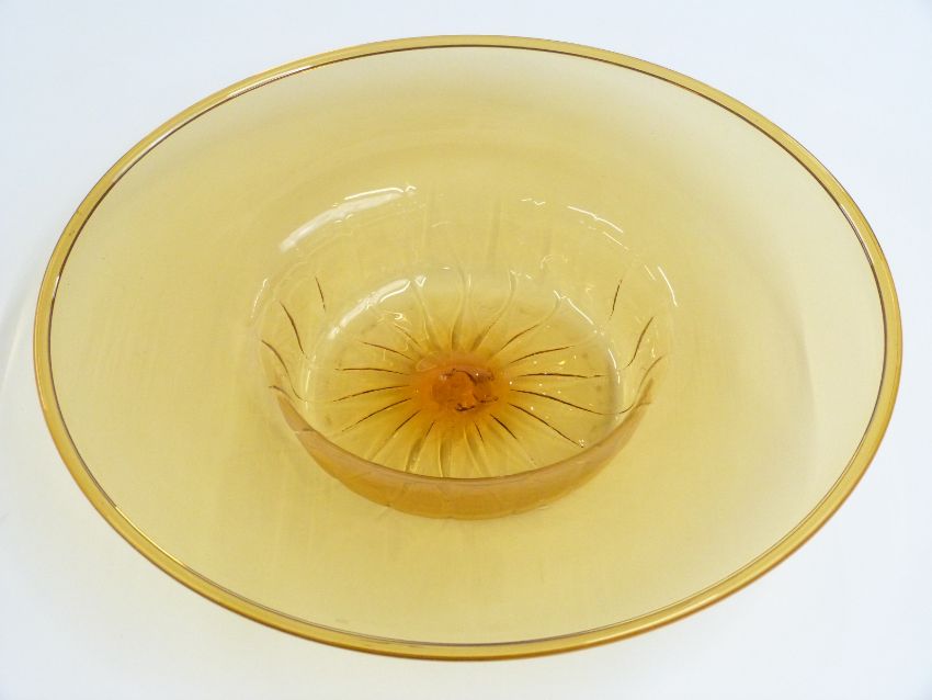 A large amber glass dish with folded rim engraved to the base Baccarat, 41cm in diameter.
