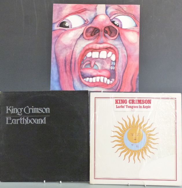 King Crimson - In The Court Of The Crimson King (2302057), Lark's Tongues in Aspic (SD7263), Earthbound (HELP6), all records and covers appear Ex