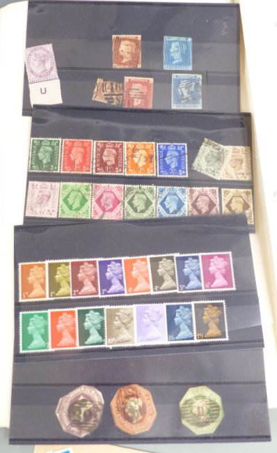 Early GB stamps on loose album pages including surface printed, plus range of modern mint issues and sundry used stamps