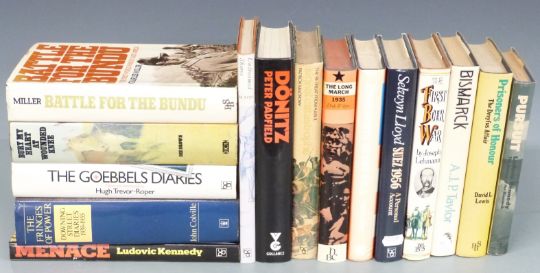 Bury My Heart At Wounded Knee An Indian History of The American West by Dee Brown, England’s Wasted Empire in America 1974 with books on The Boer War, The Bismarck, Suez 1956, Battle for The Bundu, Downing Street Diaries 1939-1955, The (Chinese) Long March 1935, Retreat From Kabul, Donitz The Last Fuhrer, Goebbels Diaries etc, all in dust-wrappers (15)