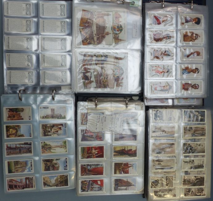 Five cigarette card albums, including transport related, general knowledge, film stars etc including Mitchell and Son, Wills, Phillips Godfrey, Dominion, Carreras, Ogdens, Lambert & Butler, Franklyn Davey & Co, Gallagher, Churchman's etc