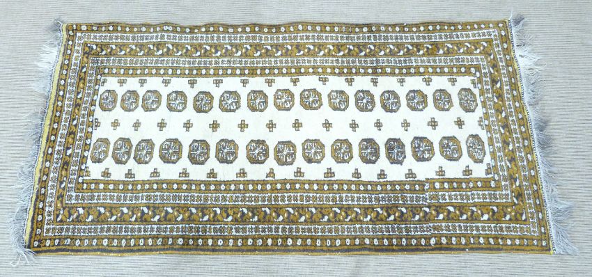 Gold and cream Turkoman rug 208 x 100cm