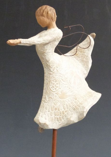Two Willow Tree Demdaco fairies on stands, tallest 45cm