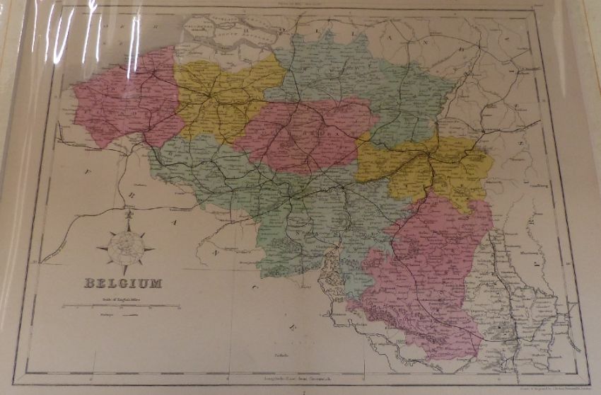 Fourteen 19thC maps including two Cary county maps and two W MacKenzie maps, one Belgium the other Scotland, largest 26 x 33cm