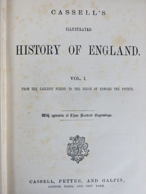 Cassell’s Illustrated History of England complete in 8 volumes with many hundred engravings (c1864) bound in publisher's blind embossed cloth with gilt decorated titles on front covers, gilt spine decoration and lettering (8)