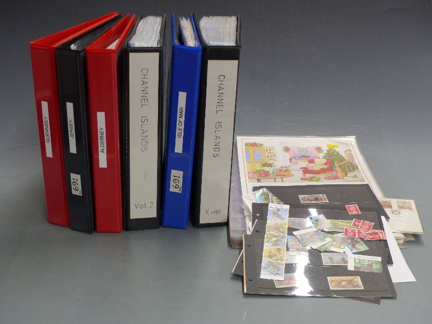 Six ring binders of Channel Island and Isle of Man stamps, mint and used, with sundry items