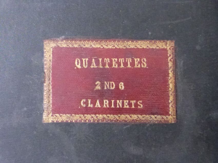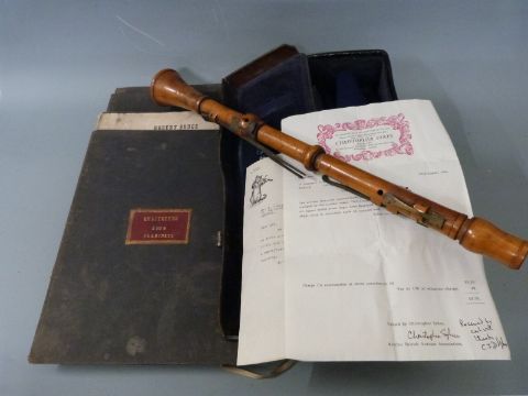 Williams of London 19thC boxwood clarinet, made in five sections each stamped with the maker's name, fitted with six square ended finger keys (no mouthpiece) in original case with some period music and some documentation dated 1930 and 1981