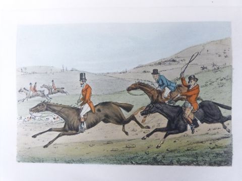 Jorrocks’s Jaunts & Jollities by R.S. Surtees with an Introduction by Joseph Grego and Numerous Illustrations by H. Alken, Phiz and W. Heath, published Kegan Paul (c.1900) with coloured frontis & title page and other plates (many in colour) finely bound by Bayntun of Bath in half morocco with raised bands, gilt titles and panels with gilt stamped designs of Horse, Fox, Hound and Horseshoe