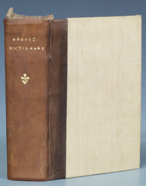 [Arabia] The Modern Traveller A Description Geographical, Historical and Topographical of the Various Countries of The Globe by Joshua Conder this being Volume the Fourth in the series on Arabia, published by James Duncan 1830 with folding map and plates, bound in half leather with gilt title labels & blind stamped decorated panels on spine, housed in slipcase, offered with an English-Arabic & Arabic-English Dictionary in cloth boards with gilt leather spine (2)