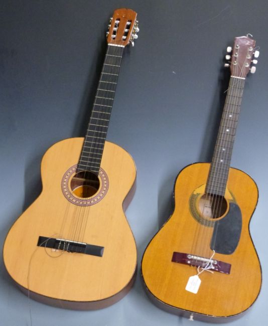 BM Espana Spanish folk acoustic guitar fitted with nylon strings together with a 3/4 size folk acoustic guitar labelled model no. G101, in soft case
