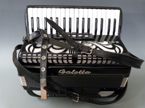 Galotta 80 bass piano accordion with five treble couplers and three bass couplers, in black gloss finish, in original case