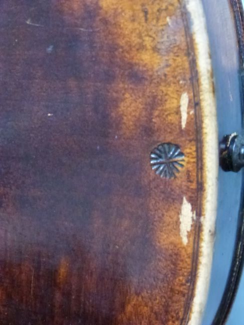 Nikolaus Amati 19thC Czech violin with 36cm one piece impressed back and period bow with mother of pearl eye to frog, all in original case
