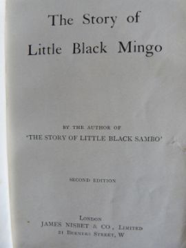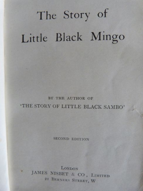 [Helen Bannerman] The Story of Little Black Mingo by the Author of The Story of Little Black Sambo, published James Nisbet (1902) second edition with coloured illustrations and bound in publisher's cloth, with an illustration and lettering on front cover