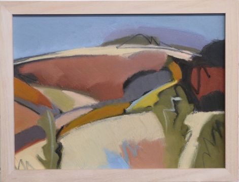 Carolyn White (1945-2013) oil on canvas 'Earth Reds' Slad Valley, with label verso, 28 x 38cm together with a letter from Carolyn White asking to borrow the painting back for an exhibition dated 2012.