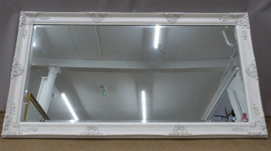 Large bevelled glass mirror with ornate painted frame, 171 x 93cm