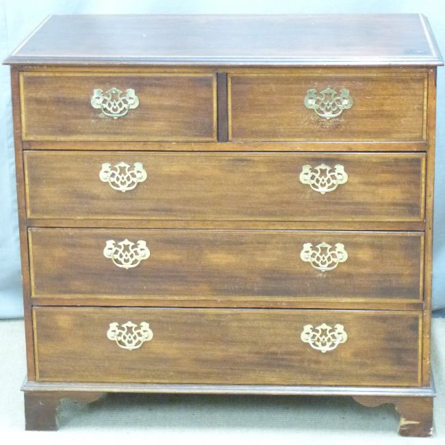 19thC mahogany chest of two over three graduated drawers, W94 x D54 x H88cm