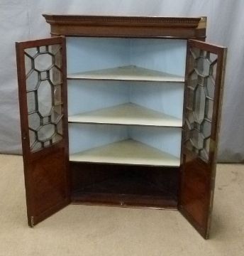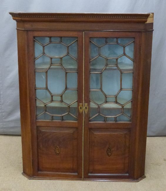 Georgian astragal glazed mahogany corner cupboard, W99 x H124cm
