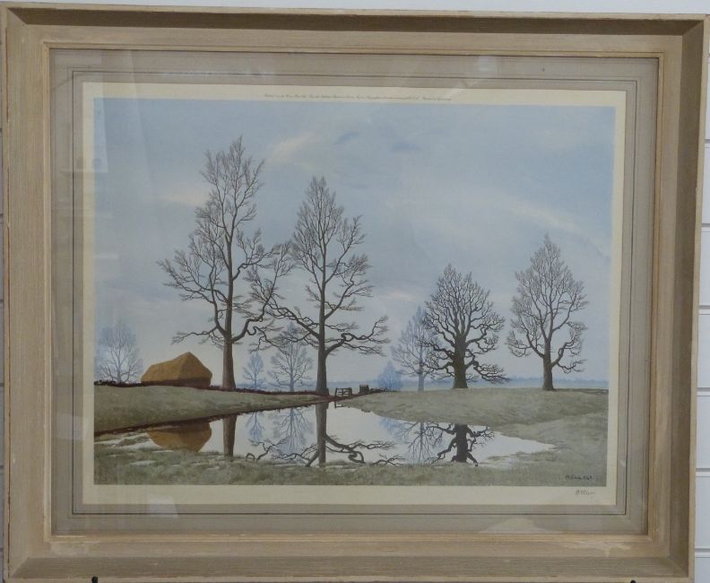 Tristram Hillier signed print 'Flooded Meadow', signed to lower right margin, 49 x 63cm