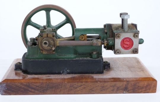 Stuart Turner live steam engine on mahogany base, W19 x D11 x H10cm
