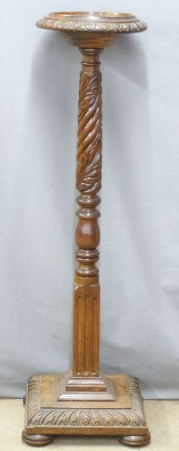 A 19thC mahogany jardiniere stand with rope twist support and carved base, H 123cm