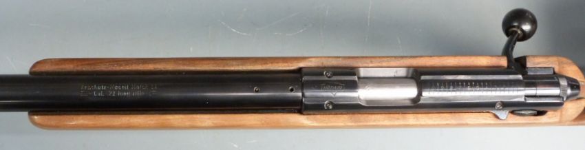 Anschutz model Match 54 18 series .22 bolt-action target rifle with adjustable cheek piece, butt plate and trigger, shaped semi-pistol grip and heavy 21 inch barrel, overall length 95cm without extension, serial number 168832X PLEASE NOTE THAT A VALID RELEVANT FIREARMS/SHOTGUN CERTIFICATE IS REQUIRED TO HANDLE/PURCHASE THIS ITEM.