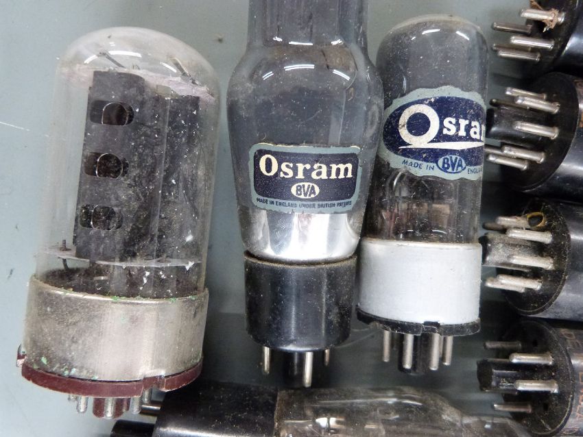 Quantity of electronic radio and similar valves including 6K7G, GEC KT61, Osram L63, VT52, Mullard PY31, VT501, VR135, CV1581, VT501, Brimar, VR99, Ediswan 6K25, MU14 and 6V6